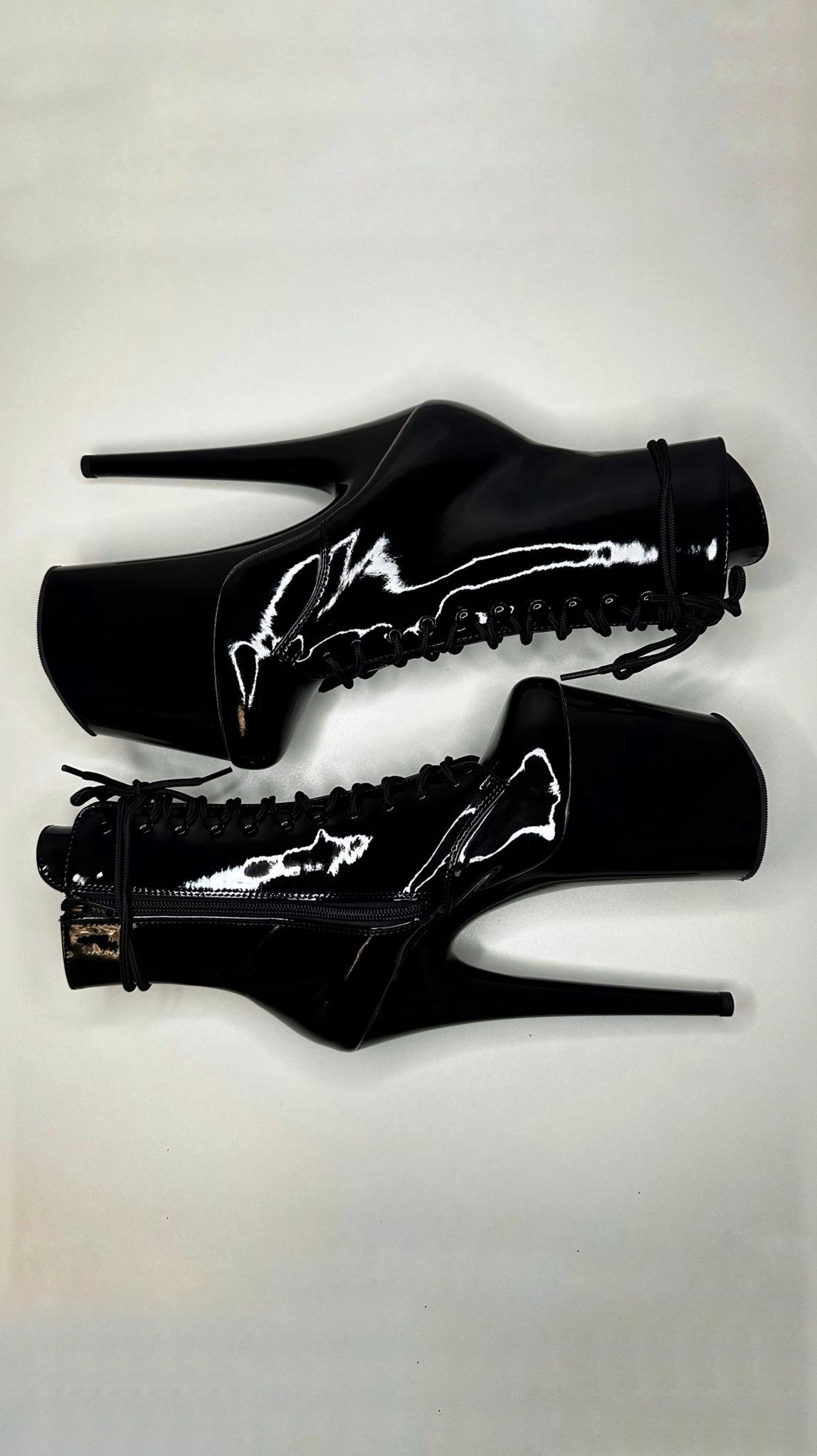 Класичні лакові стріпи з гачками на шнурівці